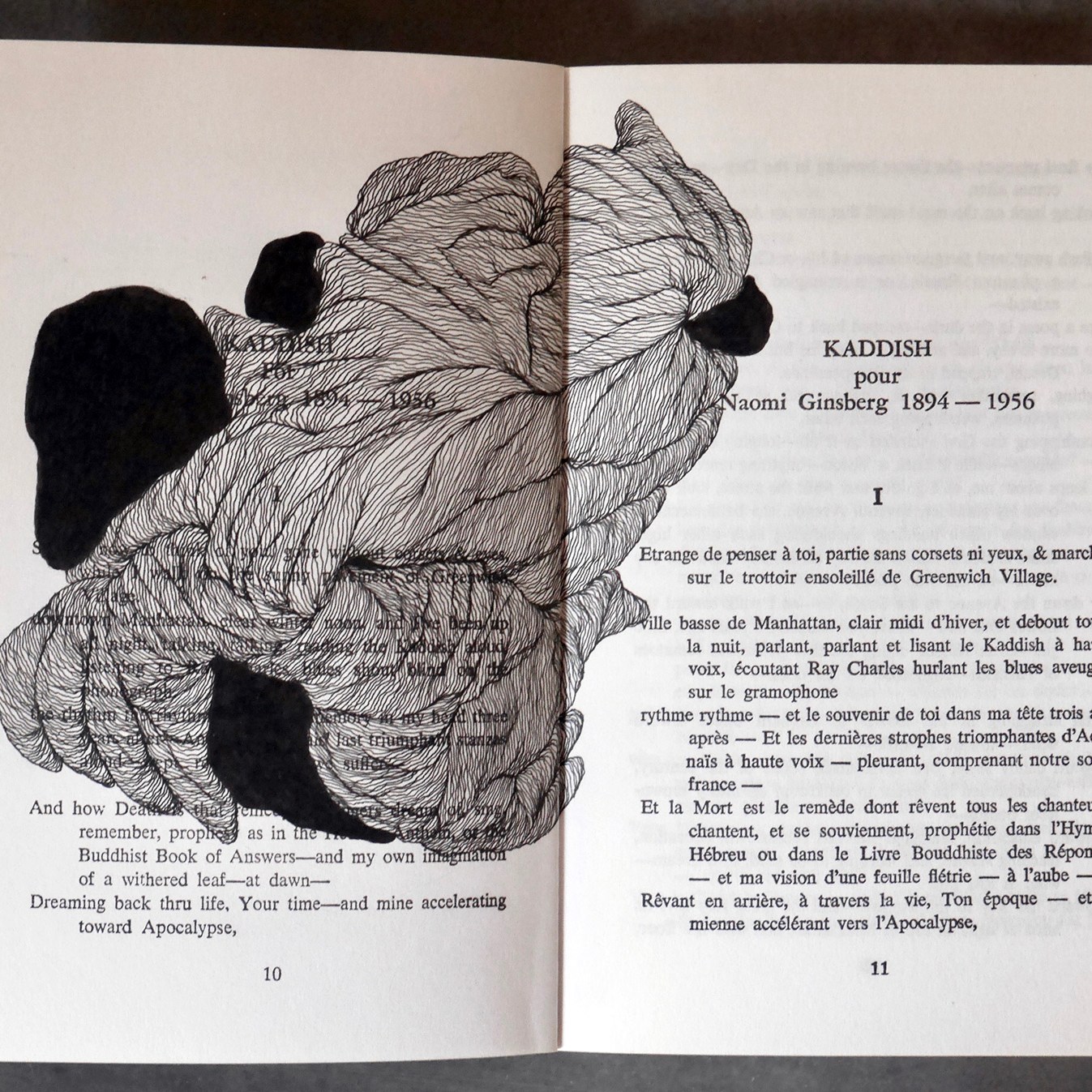 De sa formation en philosophie et dans les arts vivants, Anaïs Pélaquier retire un goût pour l’histoire (et pour la géographie) de l’intime, des objets, des vies. Ainsi, elle dessine à l’encre des lignes et, par effet de béance, des formes, sur des boîtes de médicaments, sur papier ou sur des livres de sa bibliothèque « fondatrice ». Elle y évoque les strates et les vides intérieurs et explore le vertige des origines. Avec ses perforations sur des vieux portraits photographiques glanés ici ou là, elle s’autorise également une appropriation de la mémoire perdue, la création de présences fantômes lumineuses.