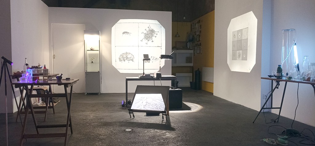Ainsi, les liens arts-sciences explorés dans le cadre de cette résidence de recherche invitent à déplacer notre regard du visible à l’invisible pour nous sensibiliser aux enjeux qui ont trait aux sols et à la diversité de ses habitants. La proposition passera par le sensible et prendra différentes configurations selon les sens invoqués, comme la vue ou l’odorat.