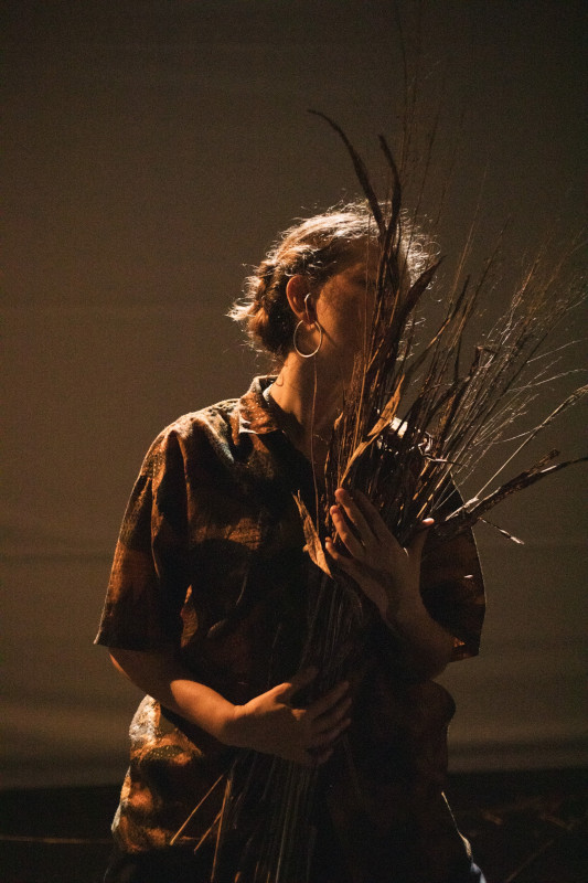 À travers la création de costumes et de formes scénographiques envisagées comme des extensions du corps (peaux, écorces, coquilles, mues, enveloppes), les matériaux organiques (paille, cire, argile…) et les formes sculpturales évoquent des corps en mutation, pris dans un monde aux équilibres fragilisés…