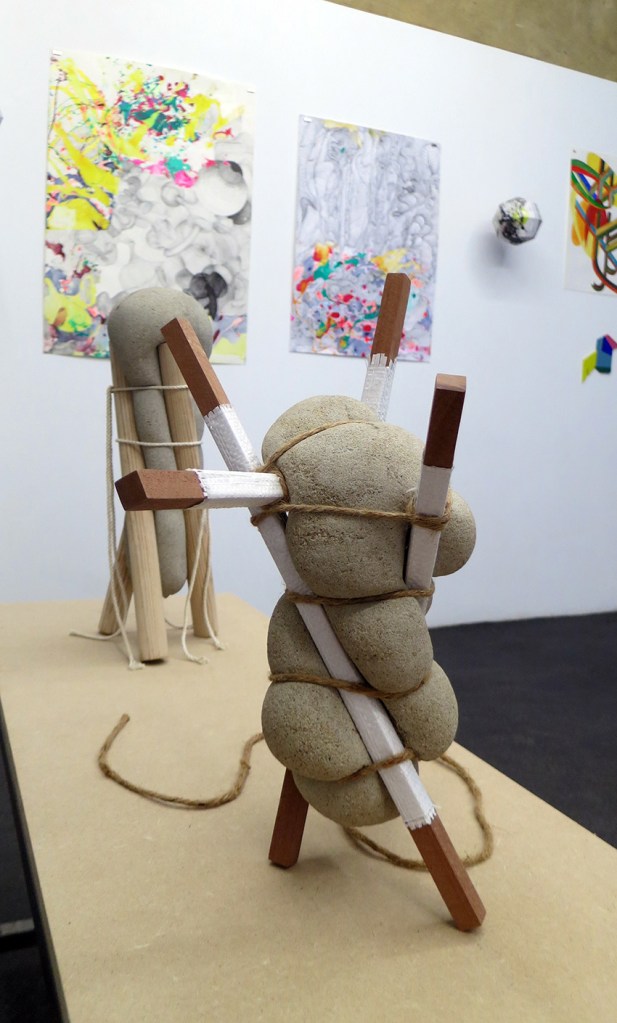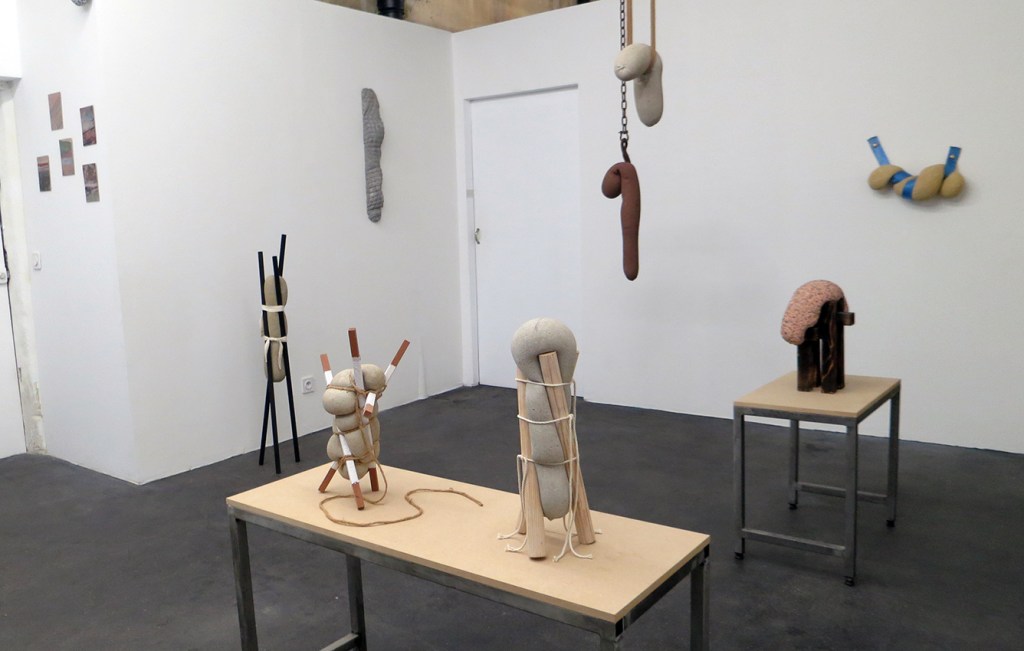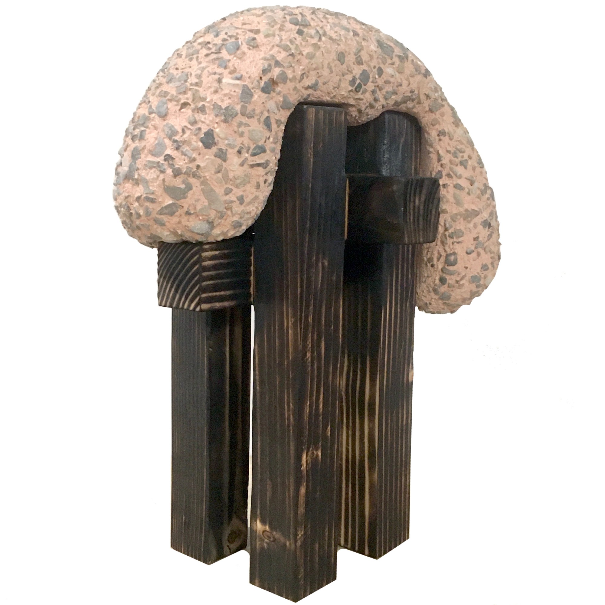 Sébastien Granier pour sa part a choisi la sculpture : il propose ici le résultat de ses recherches formelles, articulant trois attitudes possibles d’observation, de prélèvement et/ou de manipulation. Les matériaux sont soit empruntés au domaine de la construction (béton, métal, bois, …), soit glanés et choisis méticuleusement. Puis vient le processus de la juste action (moulage, assemblage, brûlage, pigmentation, …) – ou inaction (« lâcher prise ») – à trouver, pour aboutir aux formes qui seront présentées, comme autant d’essais d’existences concrètes. Les résultats témoignent d’une dialectique acceptant une part de désordre dans l’ordre global…